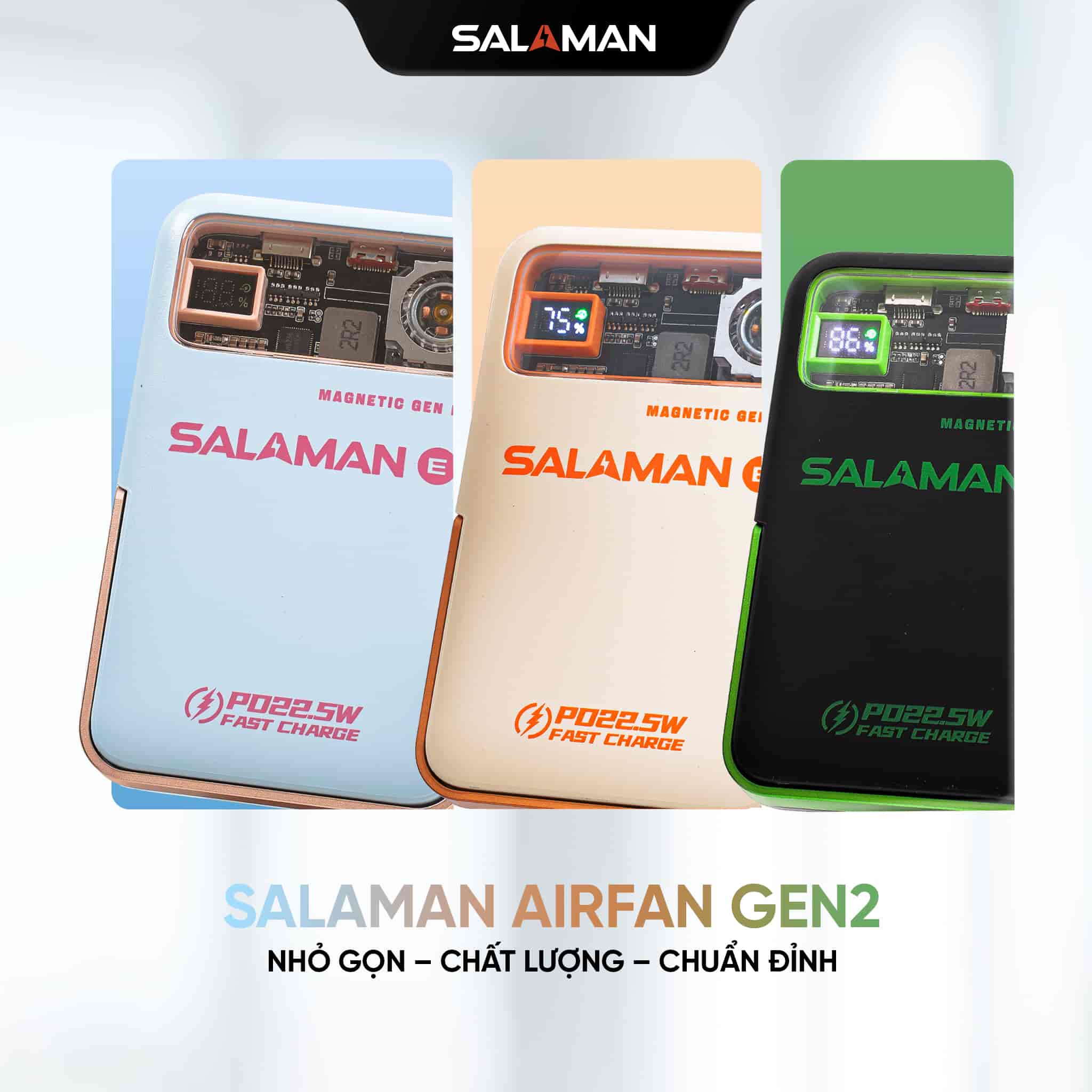 Sạc nhanh 22.5W, sạc không dây, có quạt tản nhiệt giúp chống nóng khi sạc. - Giảm 50% cho các dòng sạc dự phòng khác