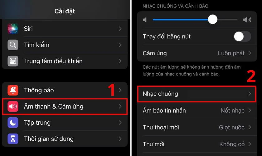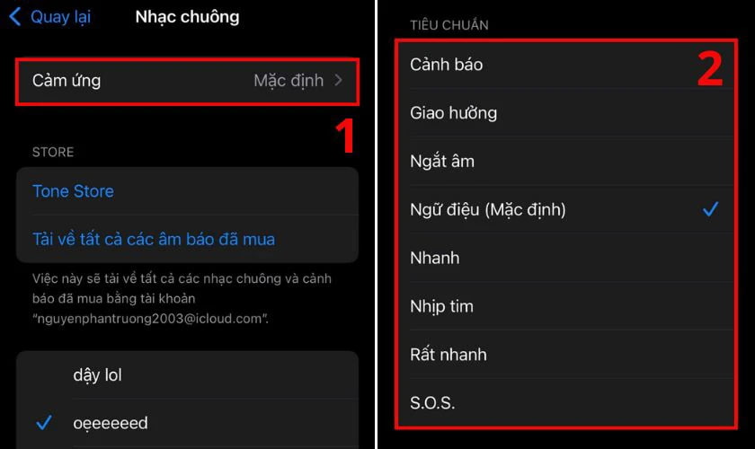 - Vào Cài đặt → Âm thanh & Cảm ứng → Nhạc chuông → Cảm ứng.