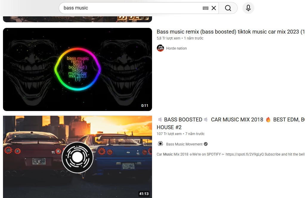 Nếu không tiện dùng trang web, bạn có thể vào YouTube tìm “bass music” hoặc bài “Bass Test – Feel The BASS (Bass Boosted)”, bật âm lượng tối đa. Các âm bass mạnh sẽ tạo độ rung giúp nước thoát ra khỏi màng loa.
