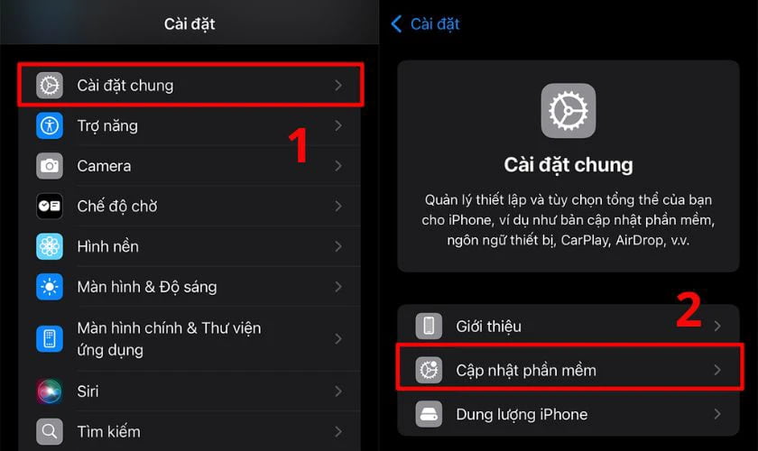 - Vào Cài đặt > Cài đặt chung > Cập nhật phần mềm để nâng cấp phiên bản mới nhất.