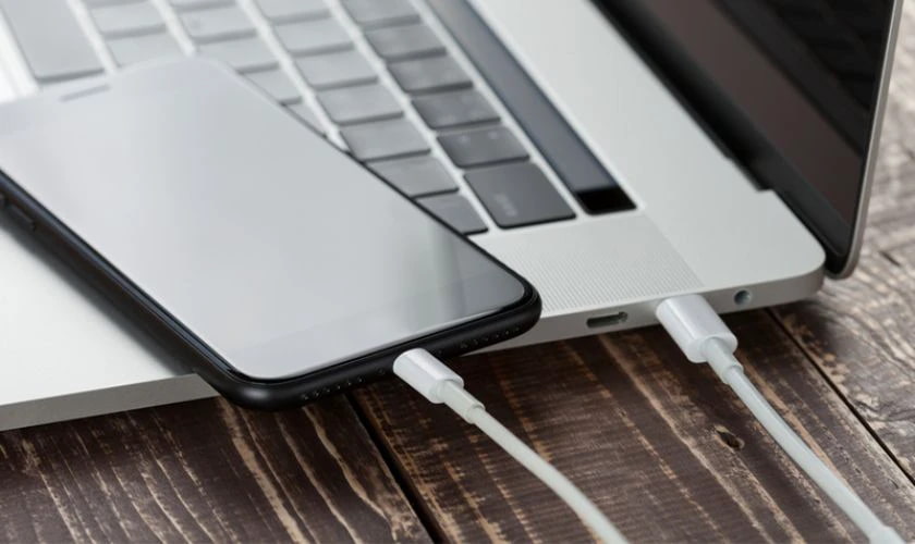 Bước 1: Dùng cáp Lightning hoặc USB-C để kết nối iPhone với máy tính.