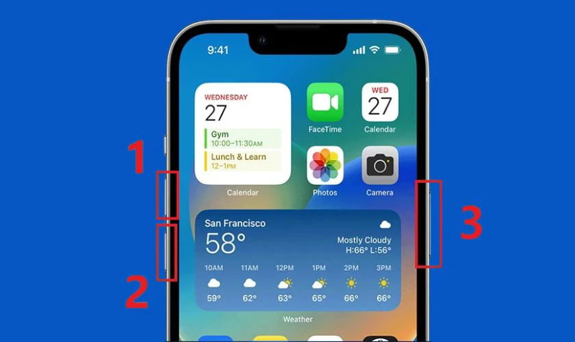 - Với iPhone có Face ID: Nhấn nhanh nút Tăng âm lượng → nút Giảm âm lượng → giữ nút Nguồn đến khi logo Apple hiện lên.